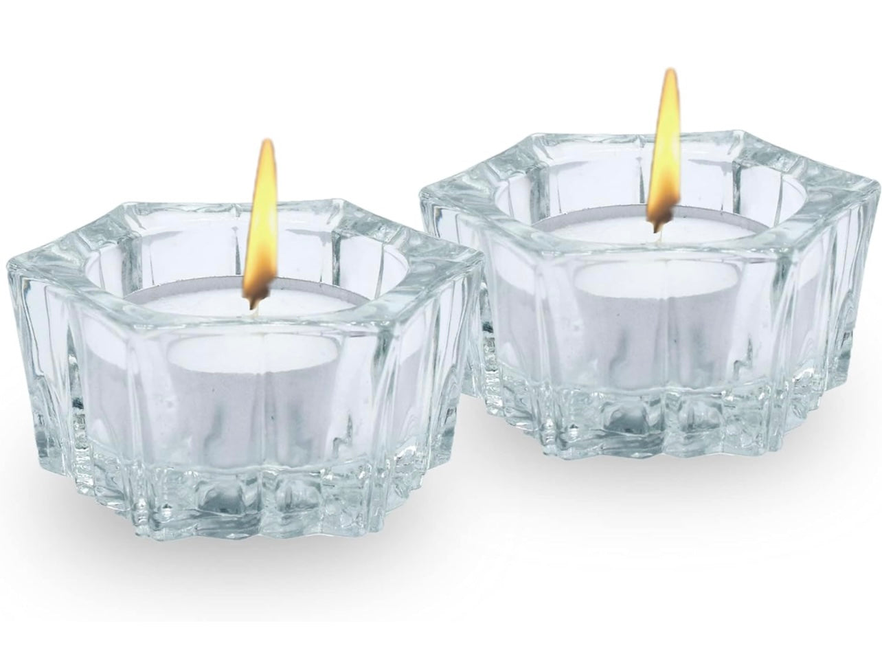 2-set of glass Shabbos candles to add to your challah